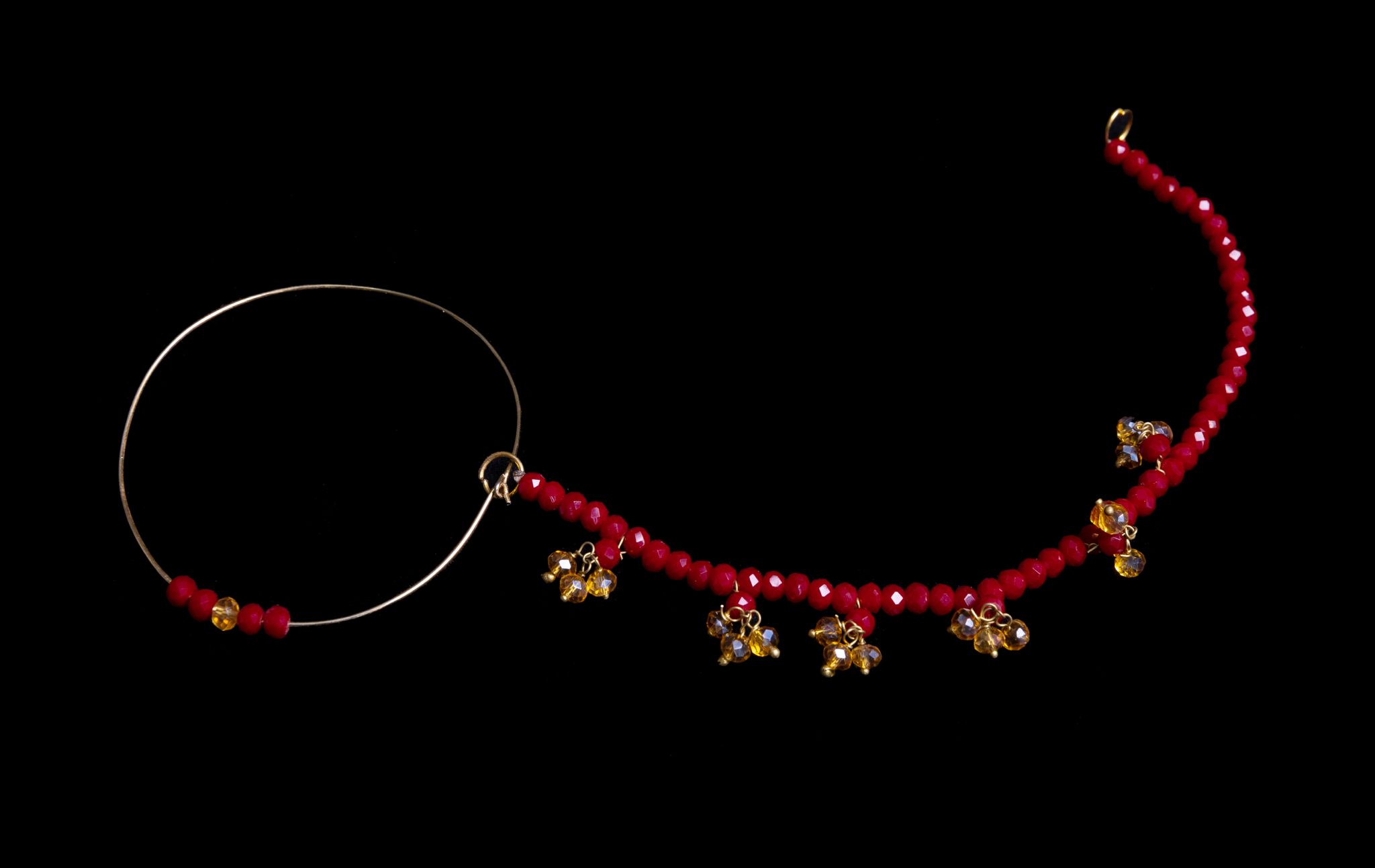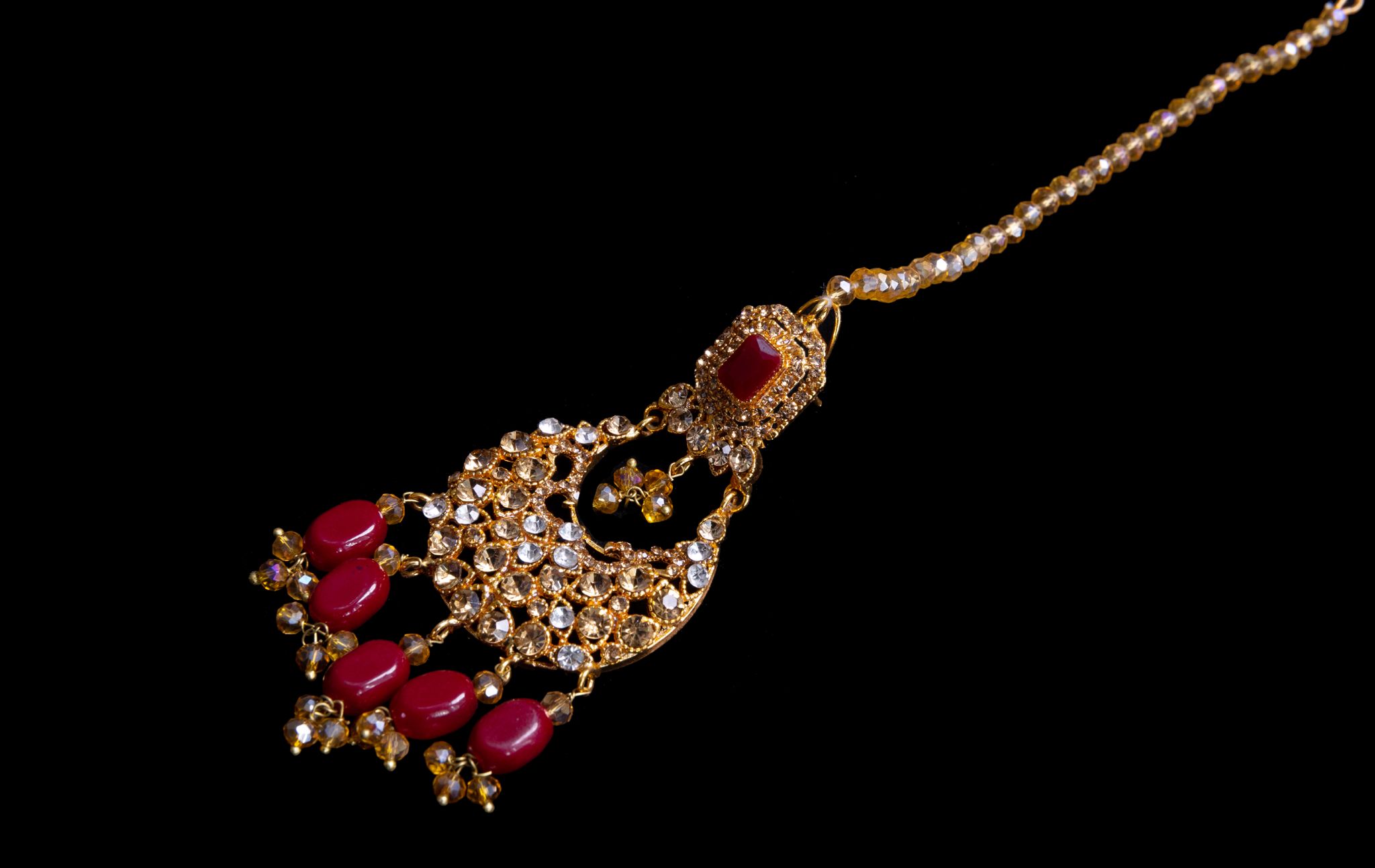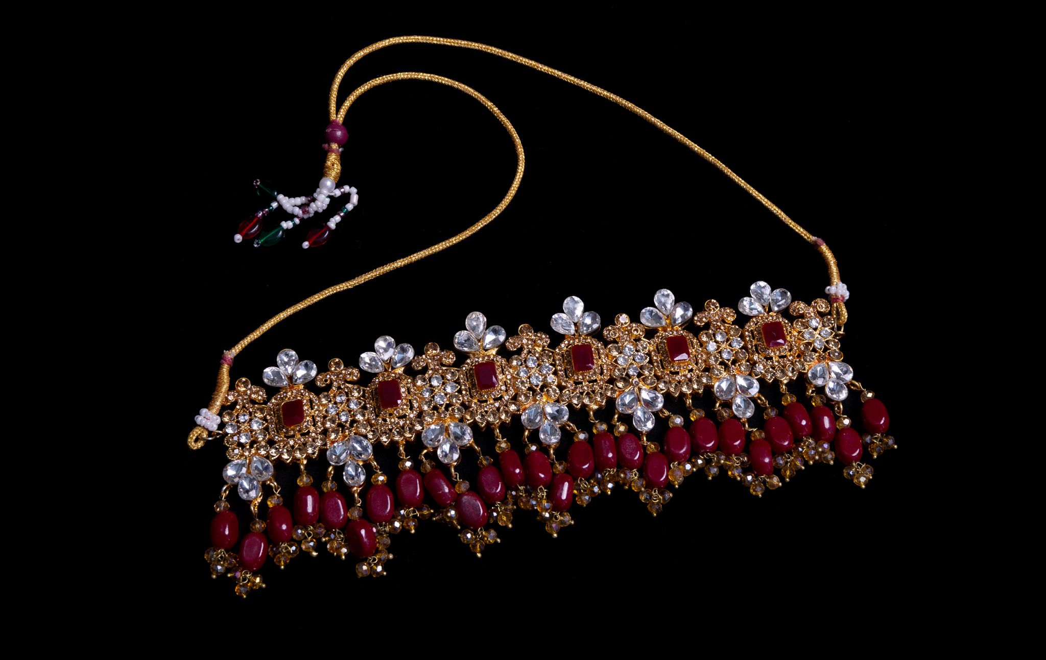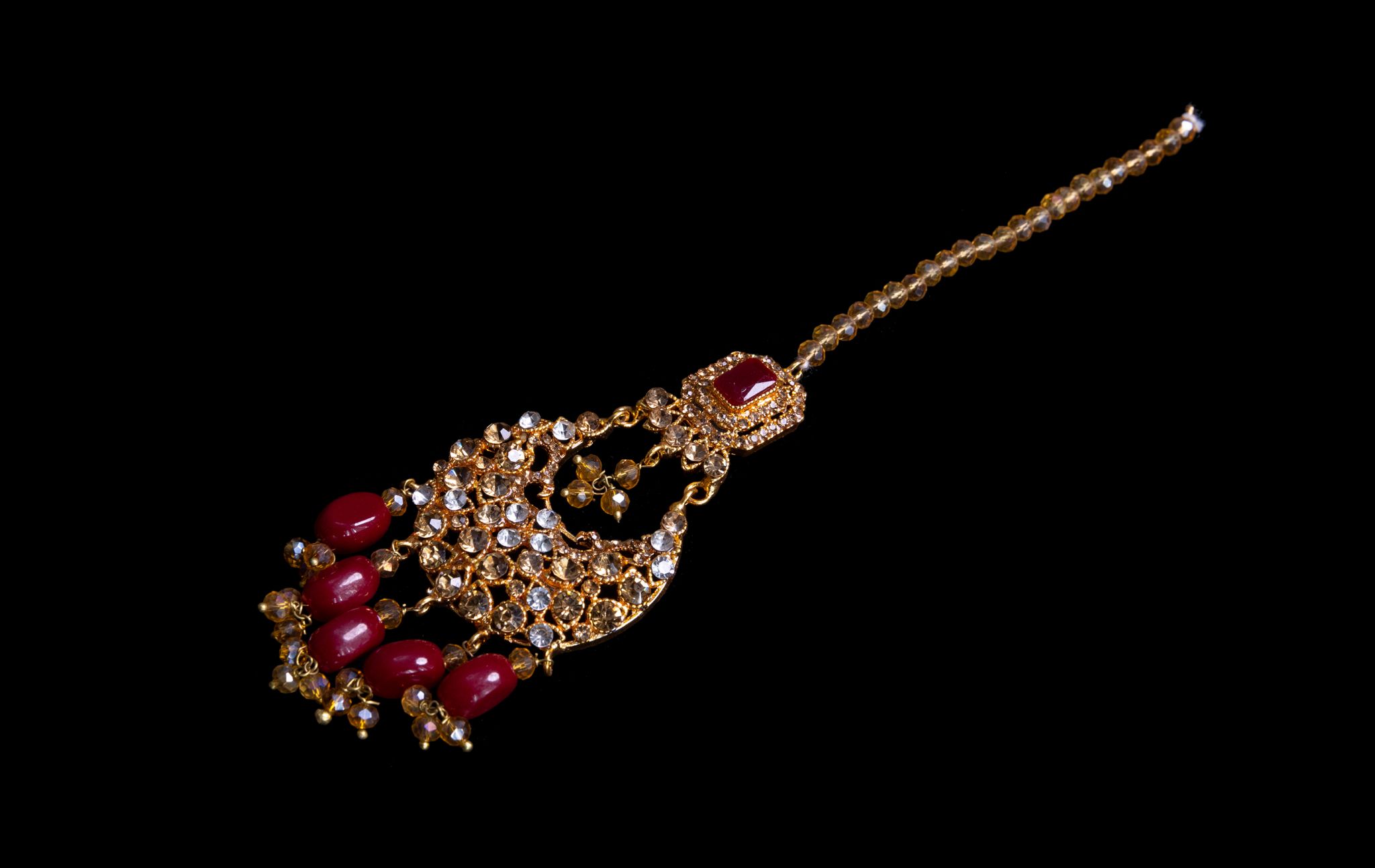 This bridal jewelry set, MB2 – Mahana Bridal, is an ornate and traditional bridal piece. The set features intricate gold detailing, encrusted with red gemstones, and adorned with pearl embellishments. Additional Accessories: The set includes smaller matching pieces, a nose ring (nath) and a matching passa & tikkahnhair accessory. The crystals add an elegant finishing touch, making it perfect for a bridal ensemble. This jewelry set works perfectly for traditional South Asian bridal wear, complementing outfits like lehengas, sarees, or heavily embroidered bridal dresses. *Special offer rate terms * All Bridal sets & ex-display sets @ £100 on offer Postage £10 per set Collection available It does not include handpieces shown in some illustrations Limited stock available *All offer sets are excluded from the returns policy *